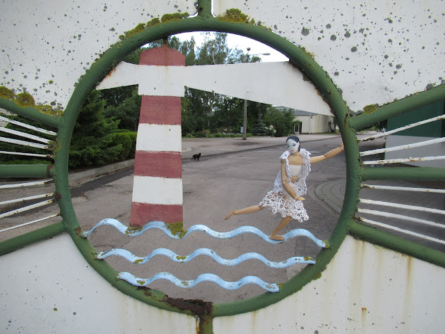 Another unusual event took place in the Liepāja plein air - Ballerina Marīna was present. I bought a damaged wooden model in a second hand shop. The child appeared to have made her as a terrible witch. I washed, painted her face and clothes. It turned out to be a beauty.